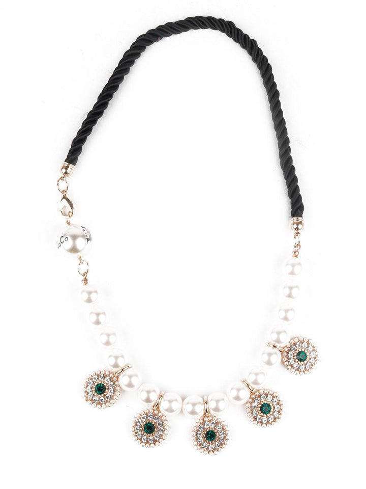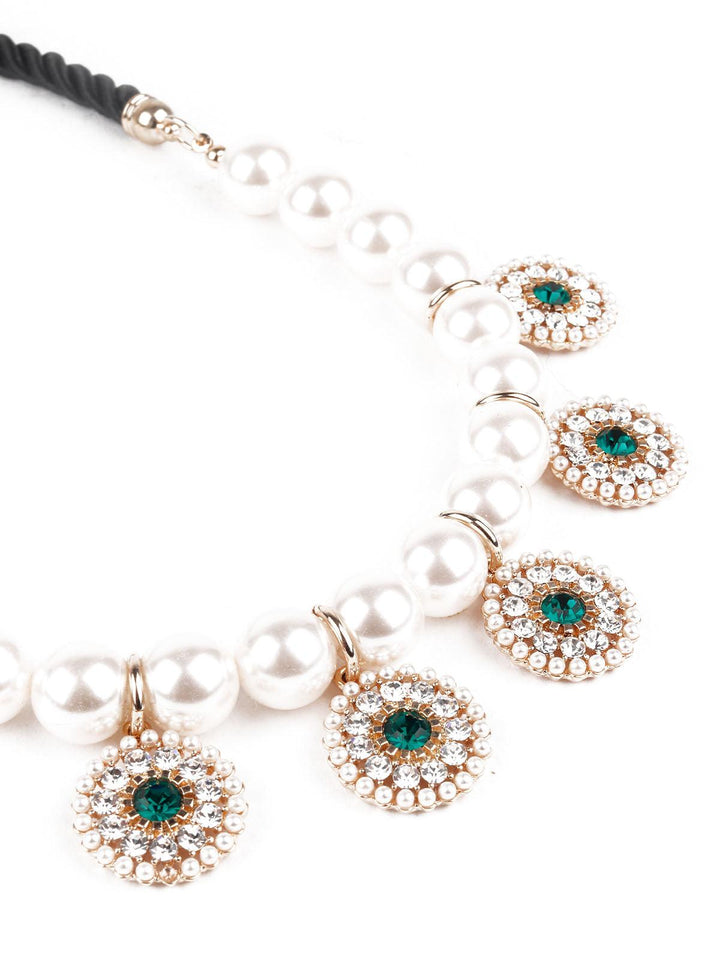 These stylish white faux pearls neckpiece with multiple pendants is perfect accompaniment to festive outfits or for evening outings and go well with Indian and Indo-western dressing.