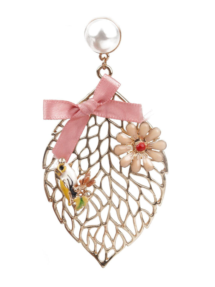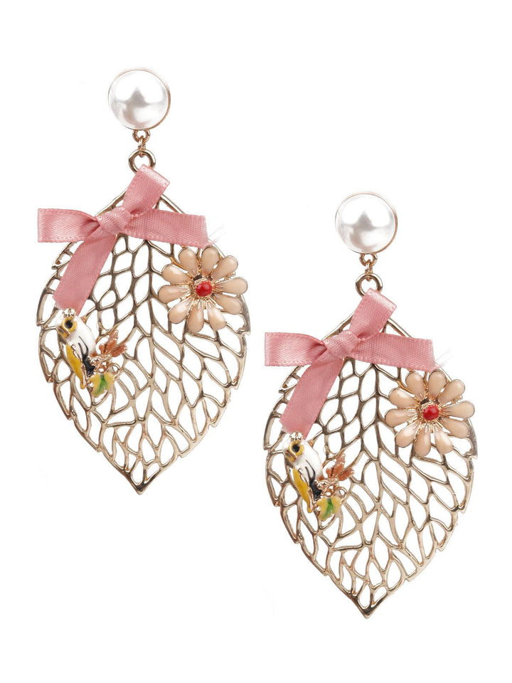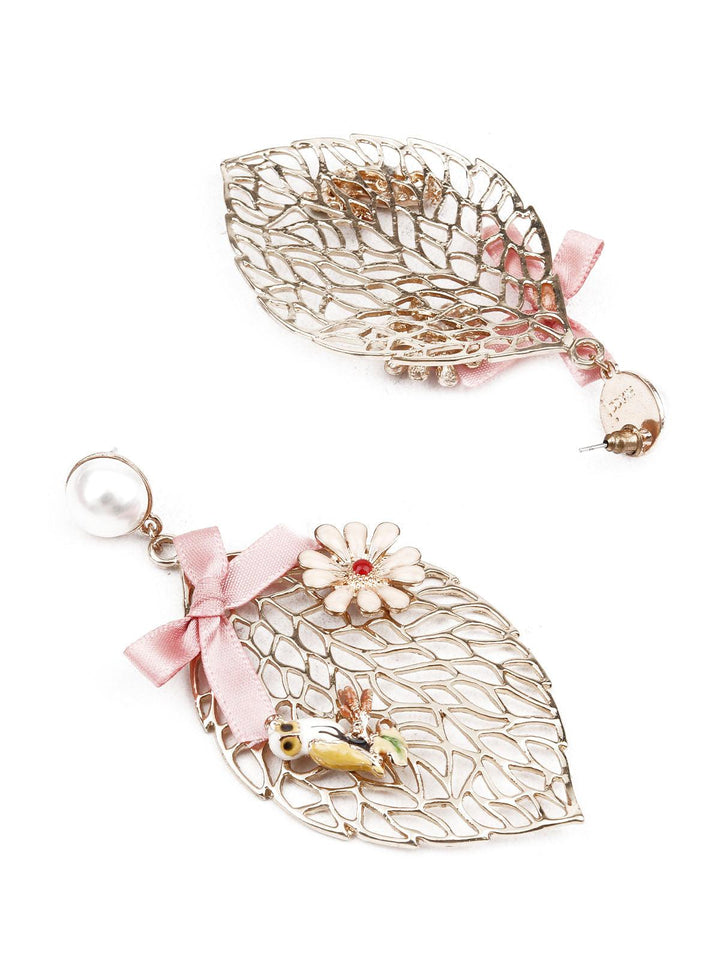 This stylish pair of pink and gold dangler earrings is a perfect accompaniment to casual and party outfits or for evening outings and go well with Western and Indo-western dressing.