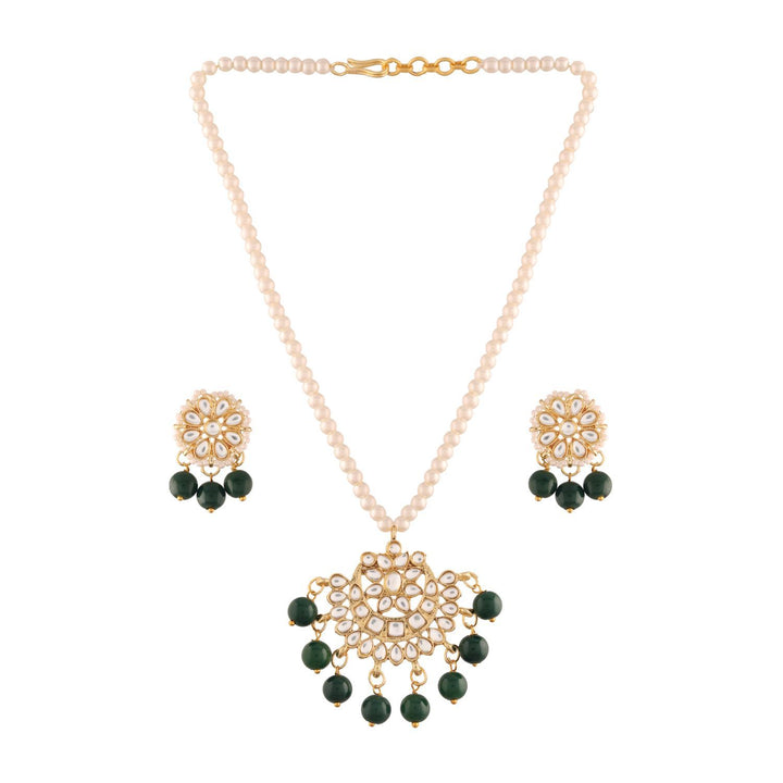 Pearl studded long necklace comes along with earrings. This captivating set is a great gifting option and is a perfect pick to add to your jewelry collection. You can style it with ethnic or western clothing