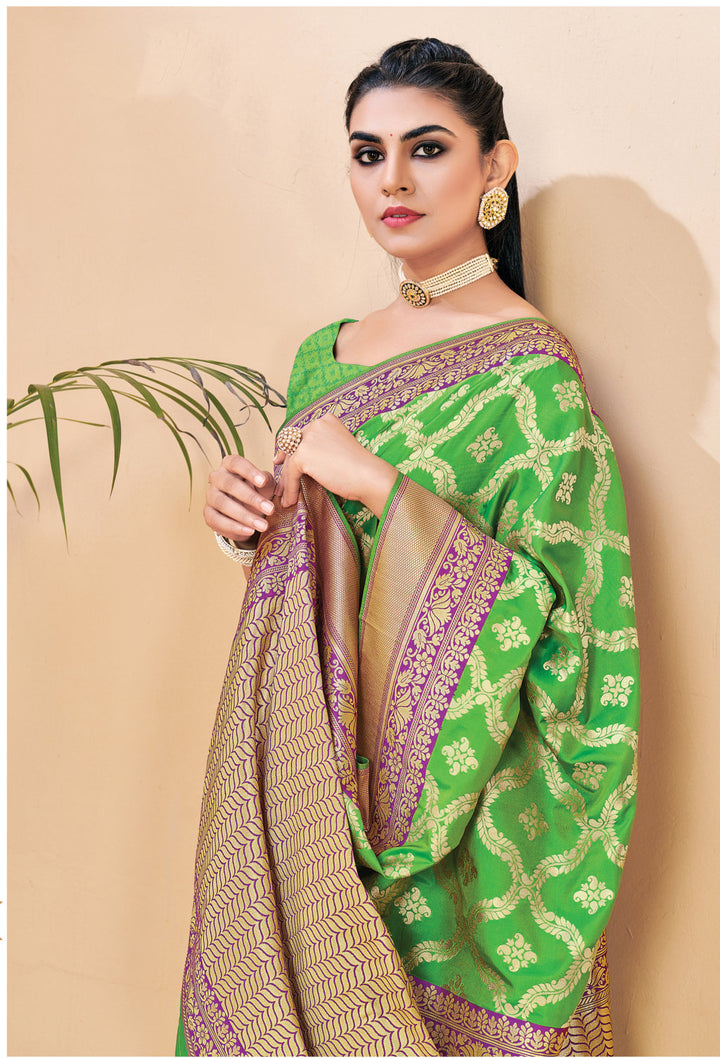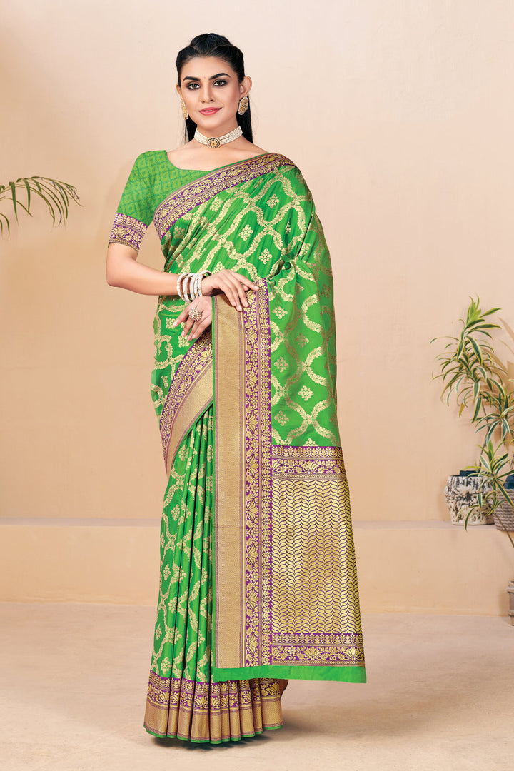 Women's Sangam Prints Green Banarasi Silk Woven Zari Work Traditional saree
