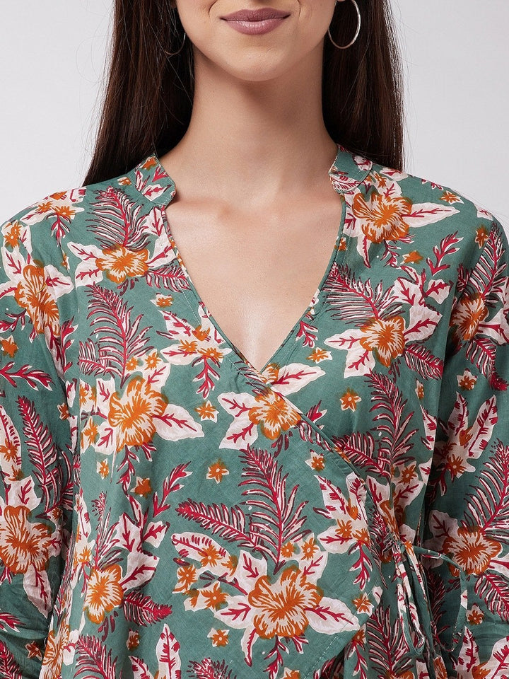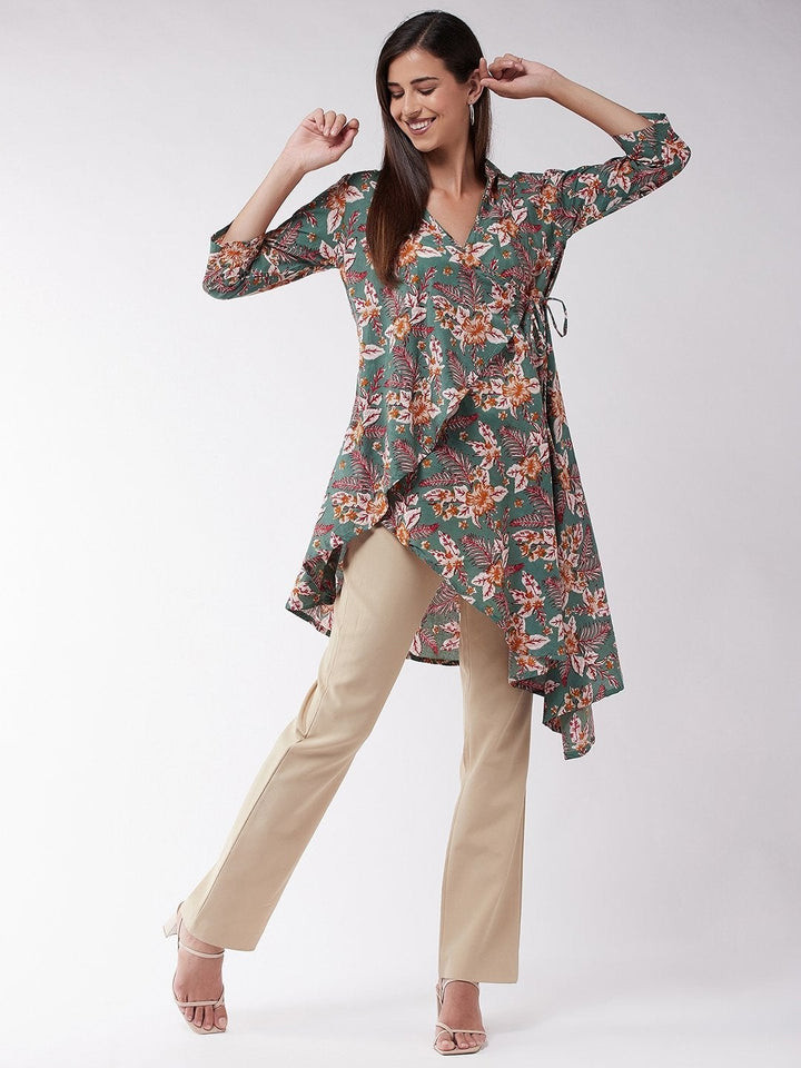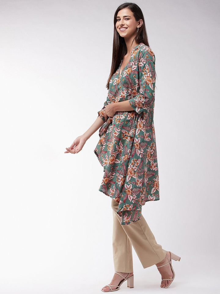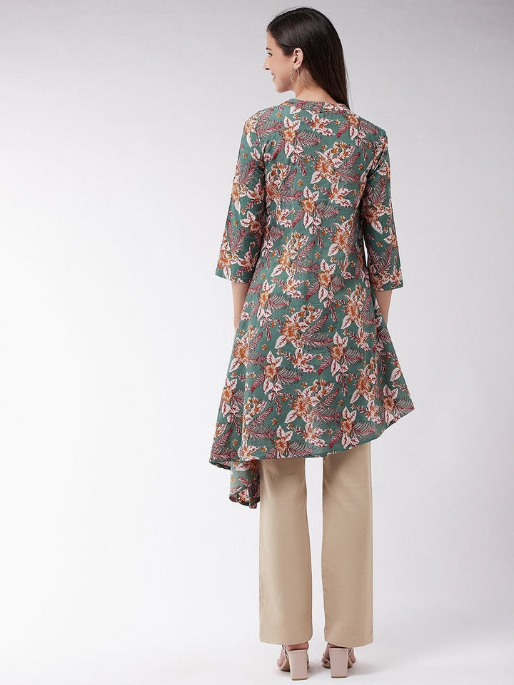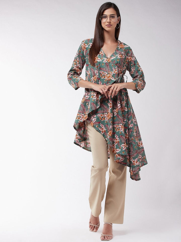 Women's Green Floral Leaf Assymetric Top