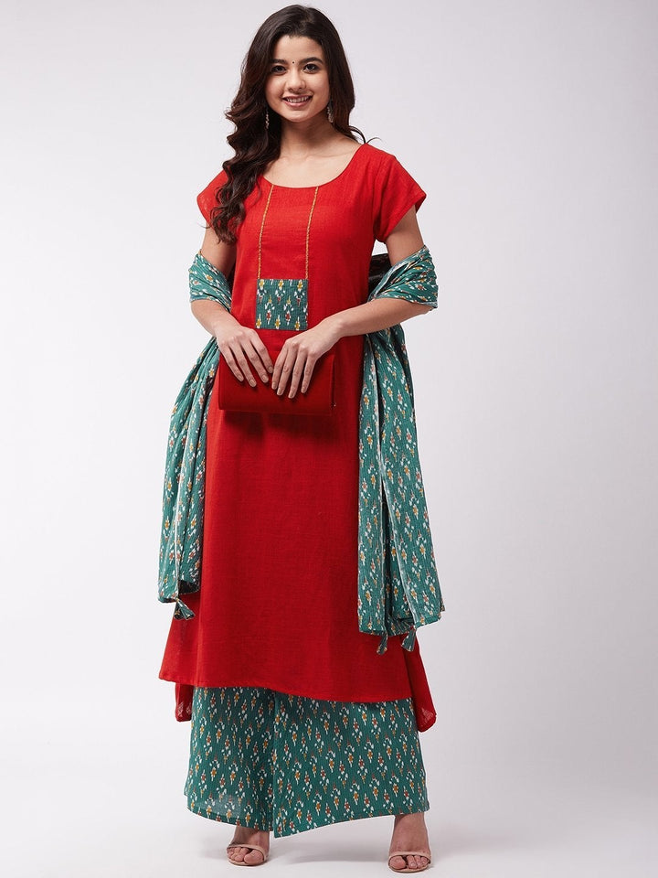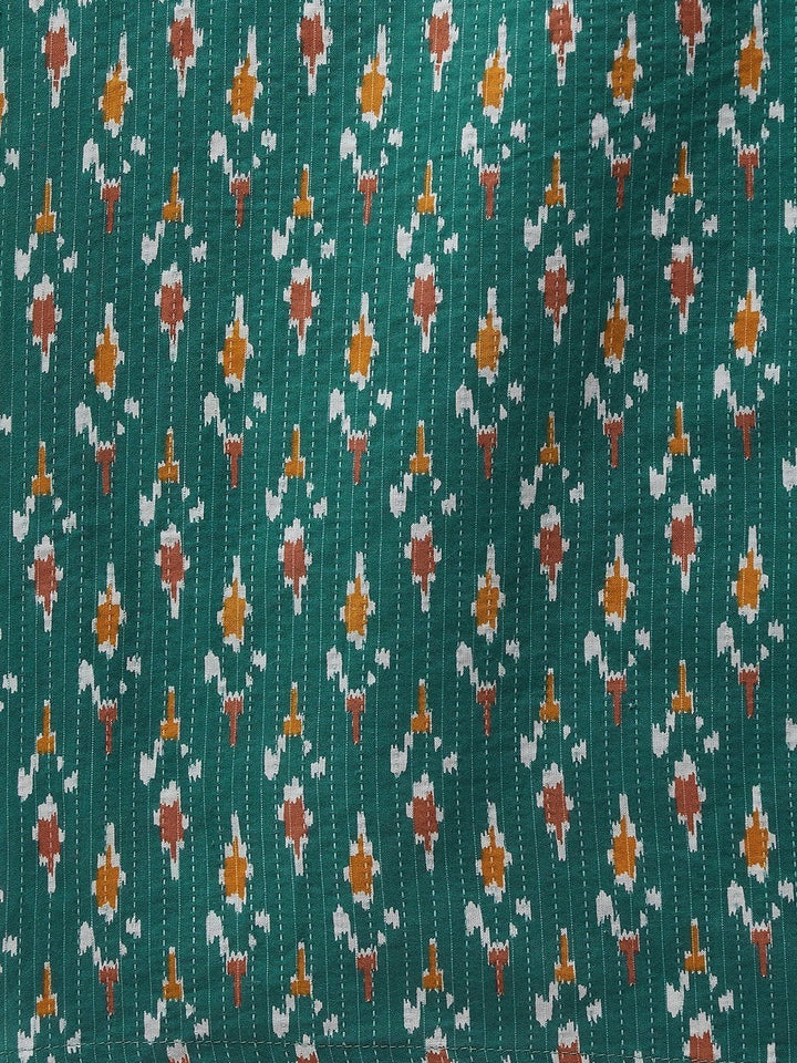Bring out the desi diva in you with this beautiful green Kantha dupatta. Team it with a flared kurta and palazzo set for a gorgeous appearance.