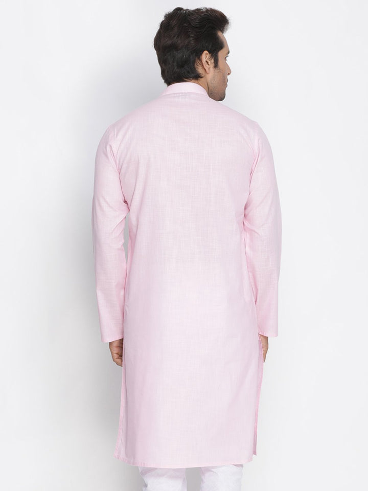 Pink solid straight kurta, has a mandarin collar, long sleeves, button placket, straight hem, and side slits