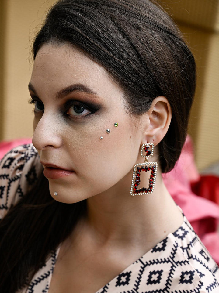 Women's Rectangular Lovely Red & Clear Dangle Earring