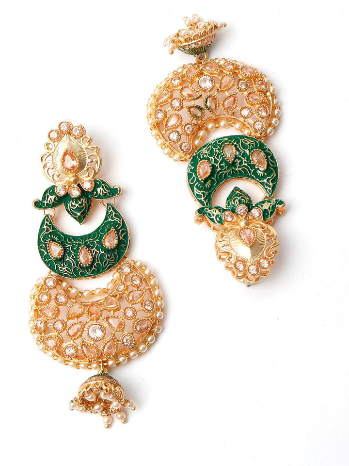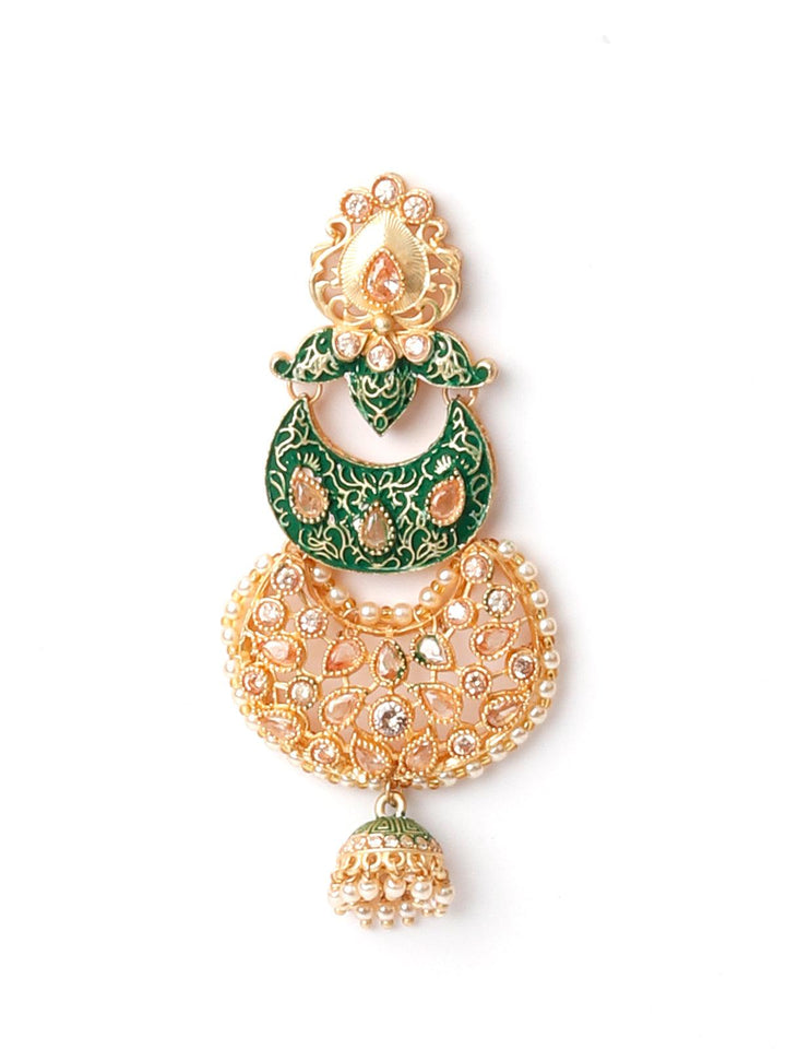 Women's Gold Tone Green-Enamelled Dangle Earring