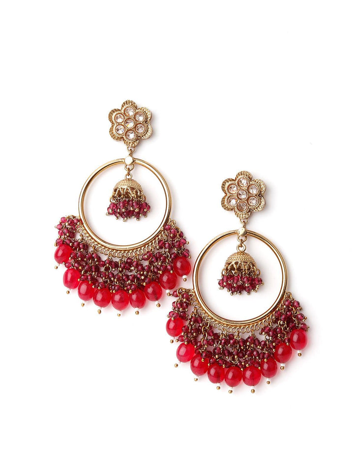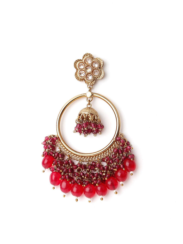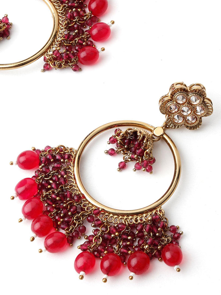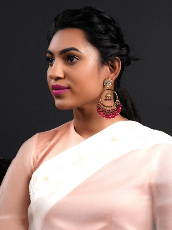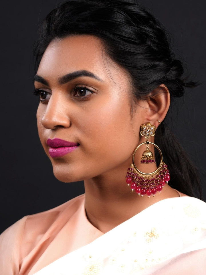 Women's Gold Tone Magenta Pink Dangling Ring-Jhumka Earring