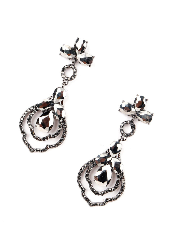 Women's Black Metal Shiny Black Diamante Rhine Stone Dangle Earring