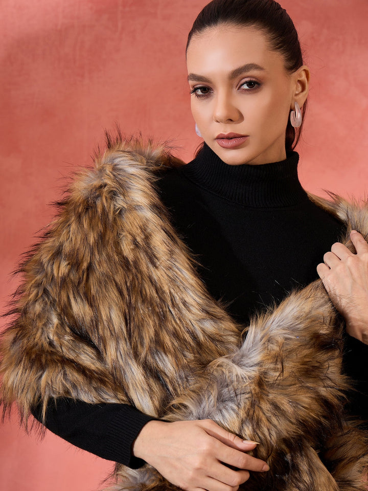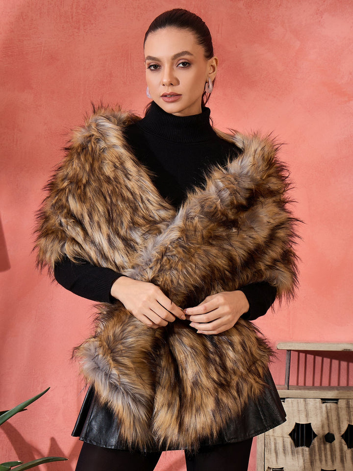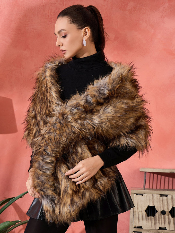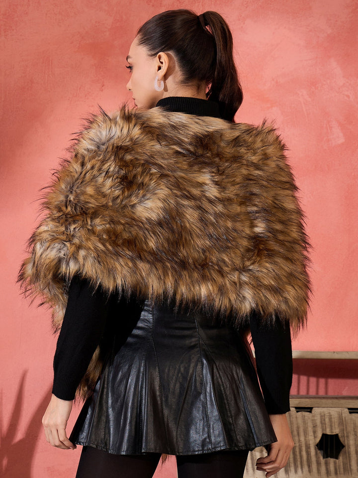 Stylish Fur Cape from InWeave can be worn two ways,wear it like a shawl or like a poncho for different looks. Product made of Acrylic. Dry Clean Recommended