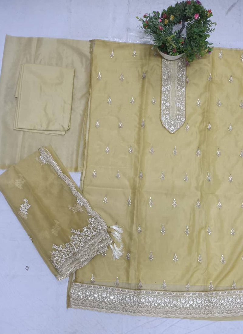 Light Yellow Organza Silk Salwar Suit With Dupatta