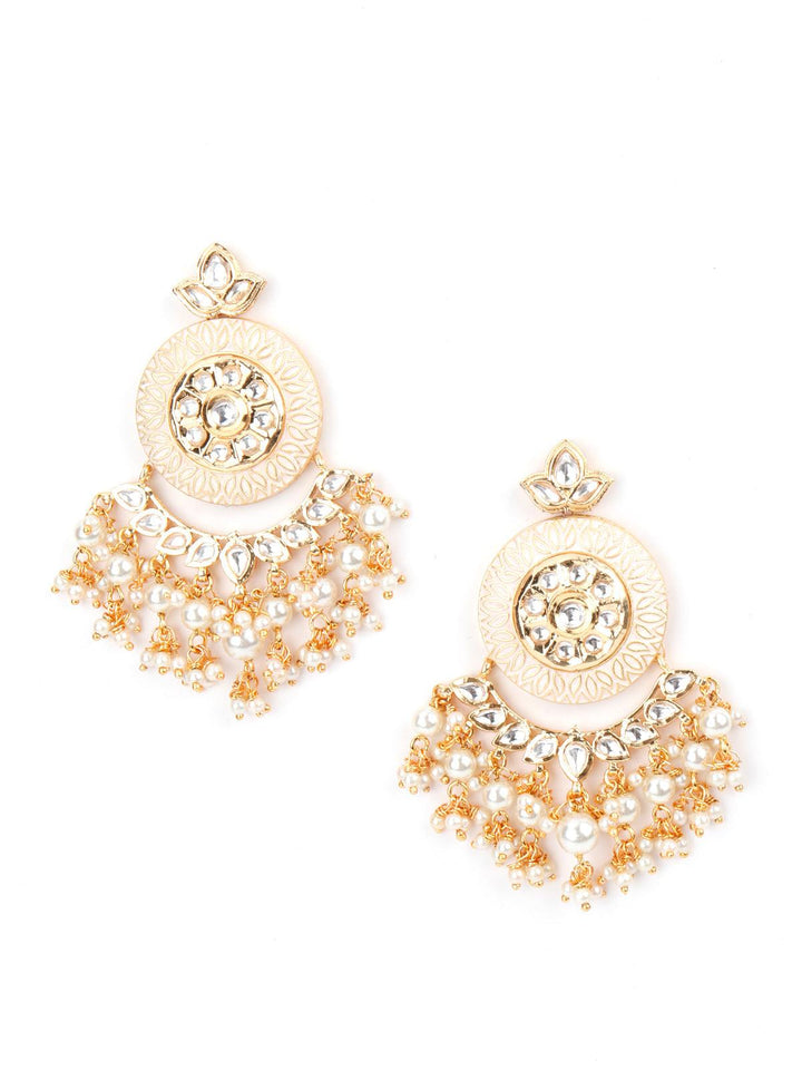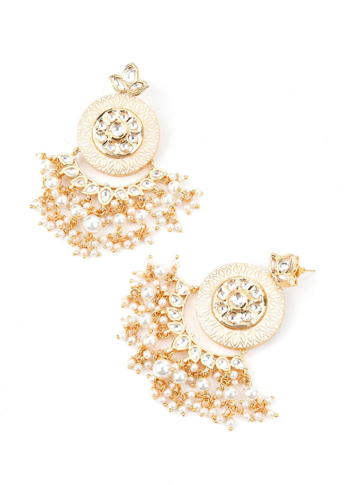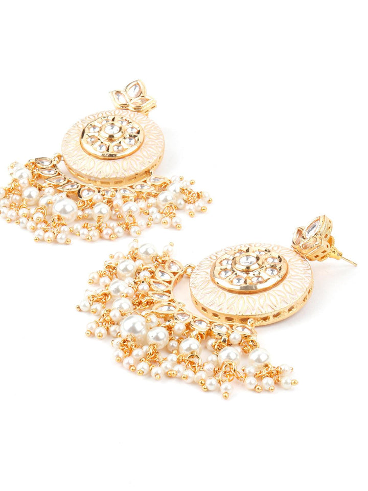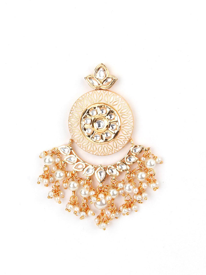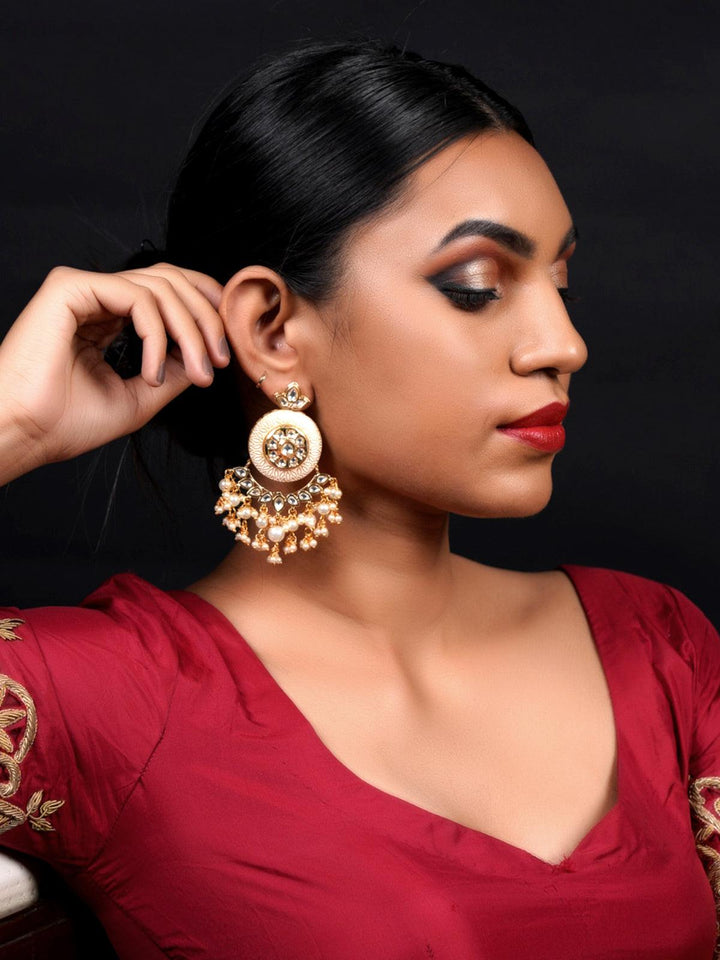 Women's Cream Enamelled Kundan-Pearl Chandbali Earrings
