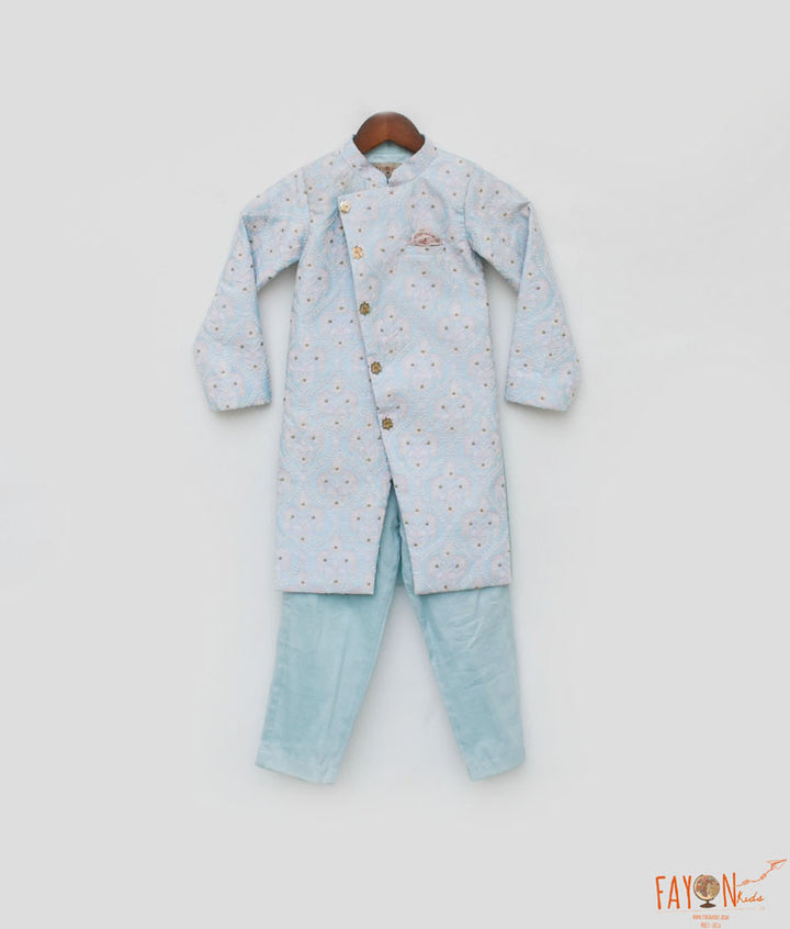 *Self Embroidery Ajkan With Soft Lining *Back Plain In Ajkan *A Symmetrical Styles With Buttons *Matching Silk Pant Without Lining *Pink Pocket Square