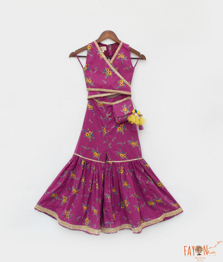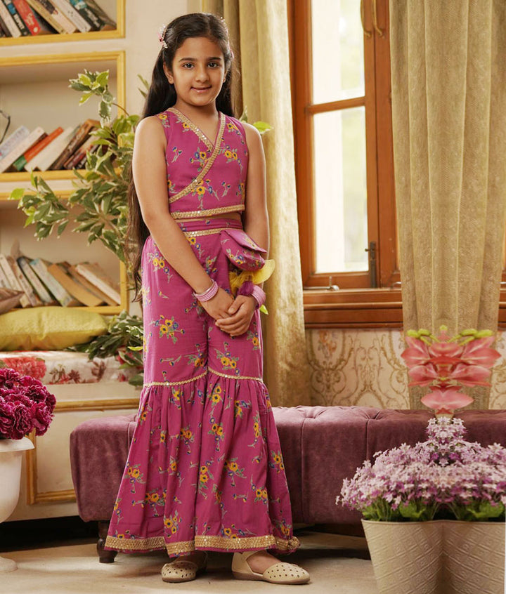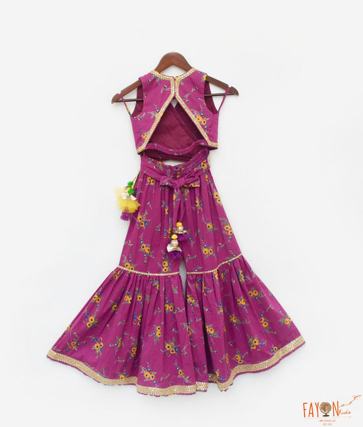 *Printed Top With Cotton Base Lining *Criss Cross Style Top With Golden Finishing *Sharara Without Lining *Golden Finishing In Sharara
