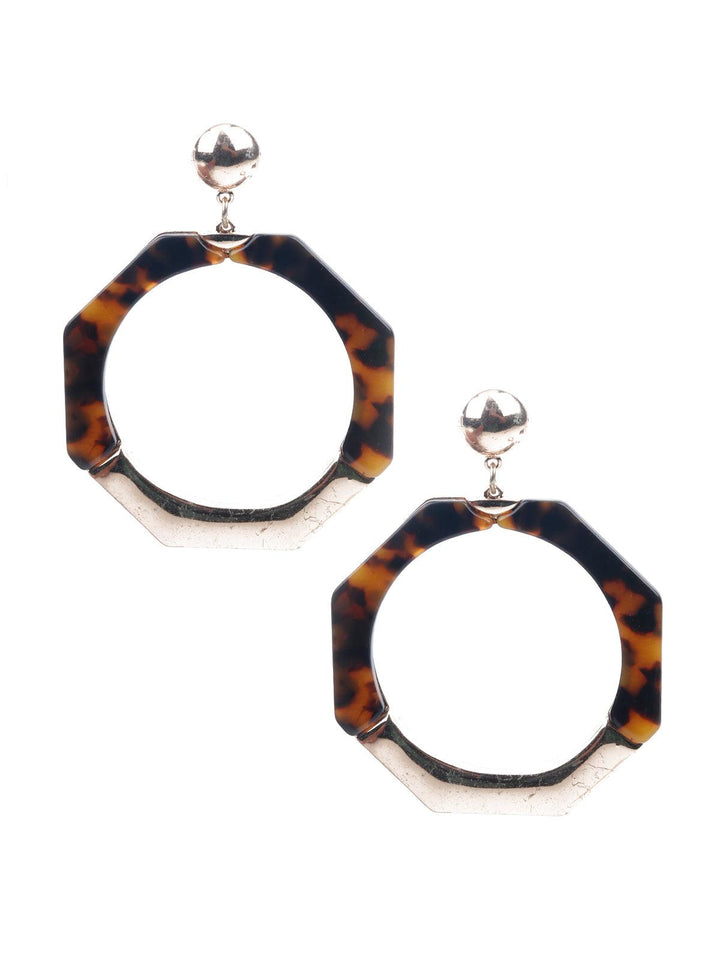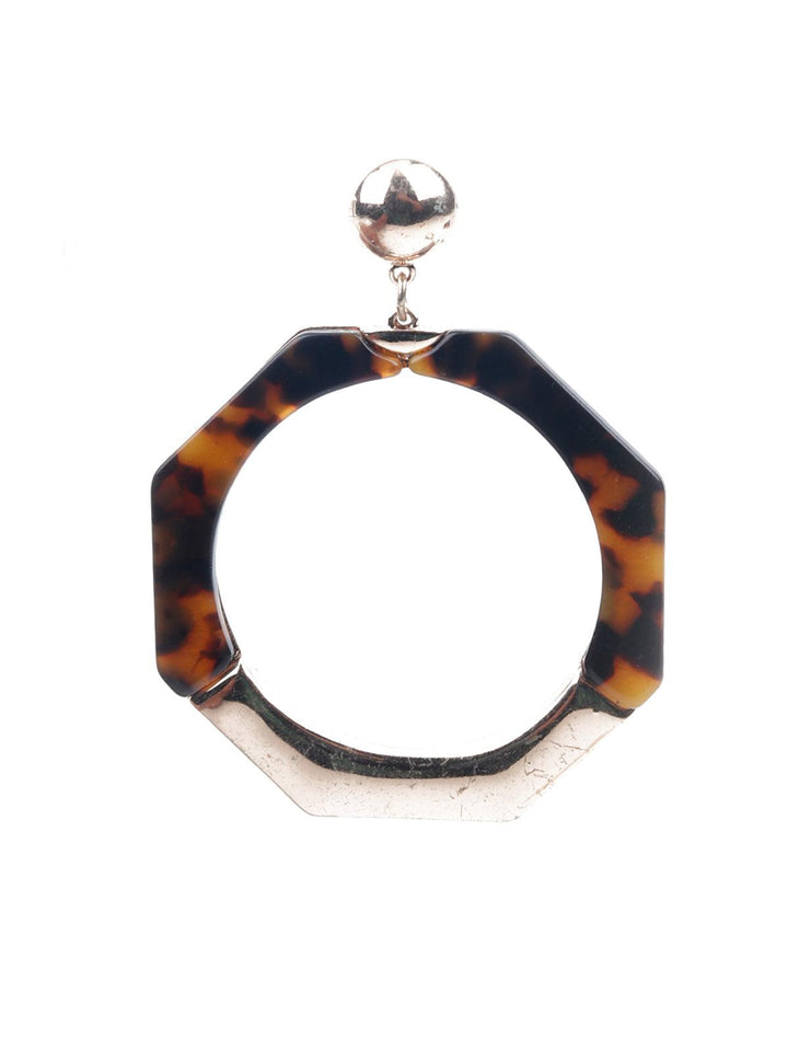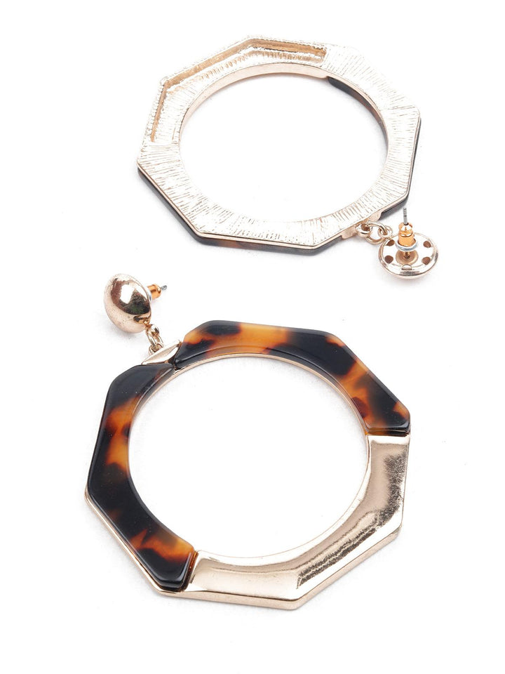 Women's Brown And Gold Hexagonal Dangle Earring