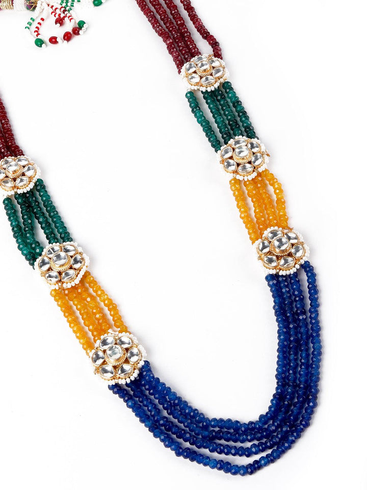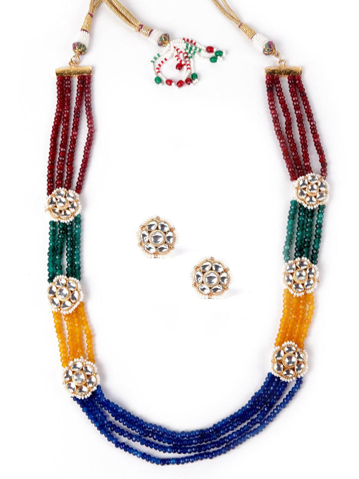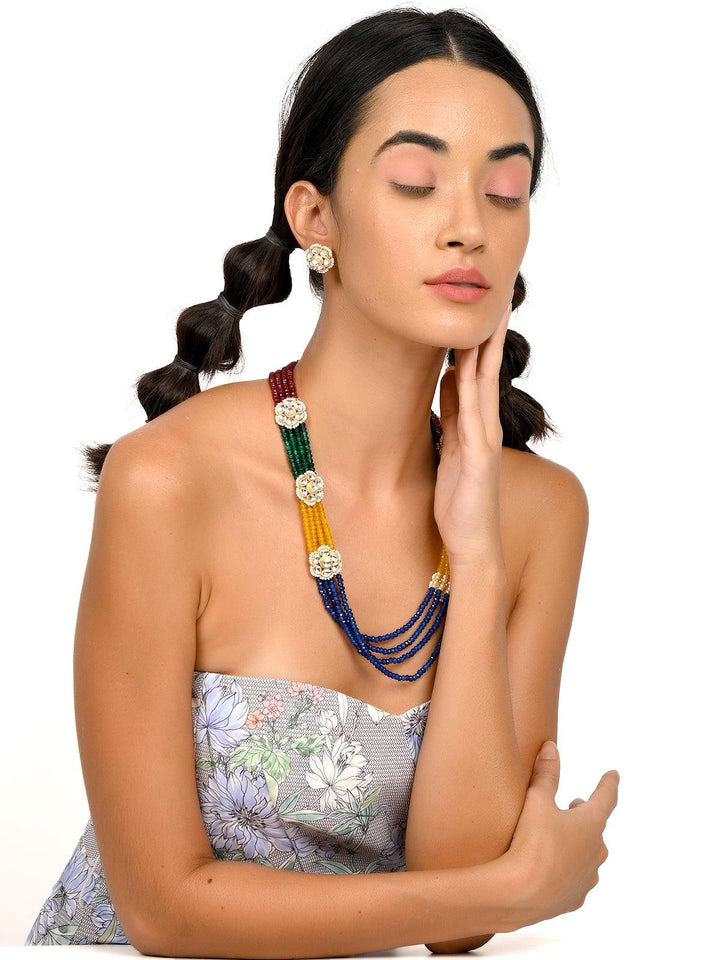 Odette brings you this stunning necklace set that comes in vibrant multicoloured artificial beads, embellished with artificial floral diamonds, the necklace comes with equally gorgeous complimenting earrings. the necklace is secured with a drawstring closure and the earrings are secured with a push pin closure fastening.Product detail: