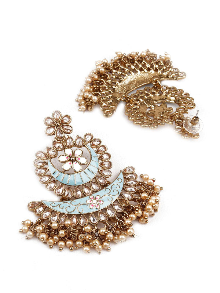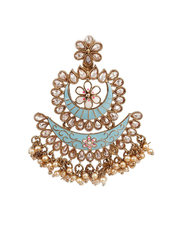 Women's Designer Blue And Gold Layered Chandbali Earring