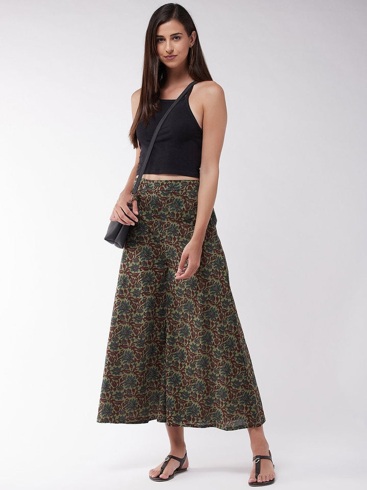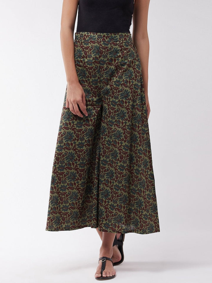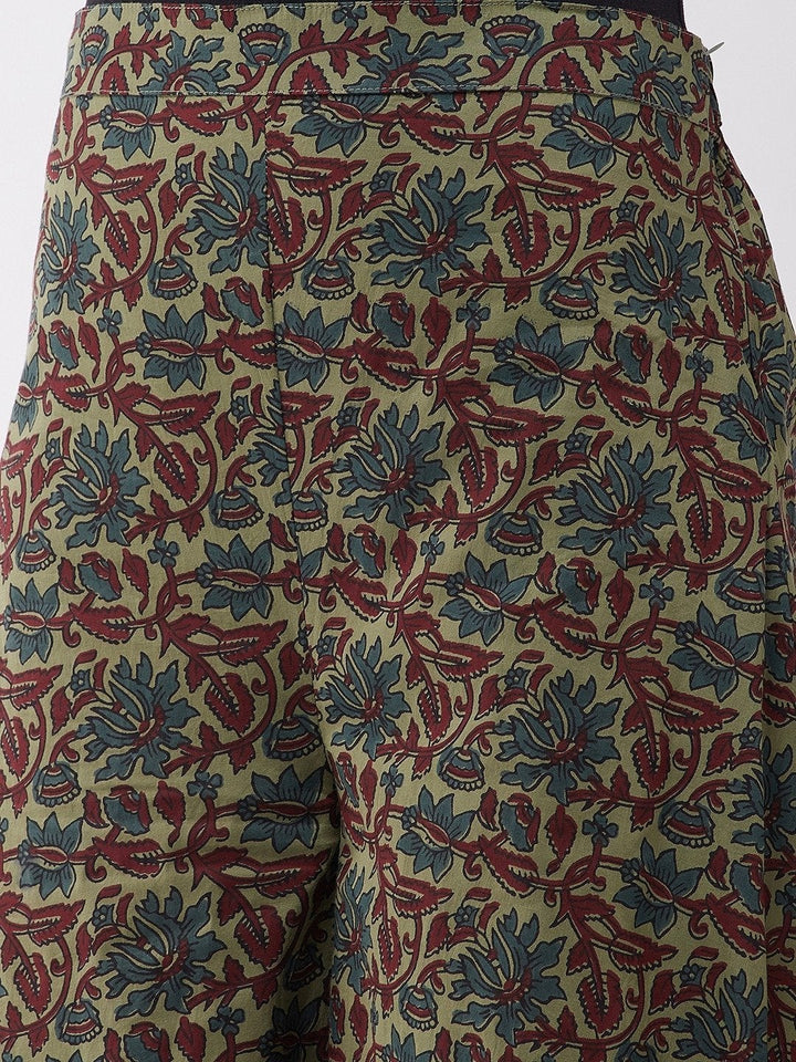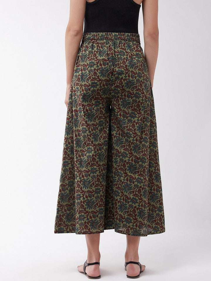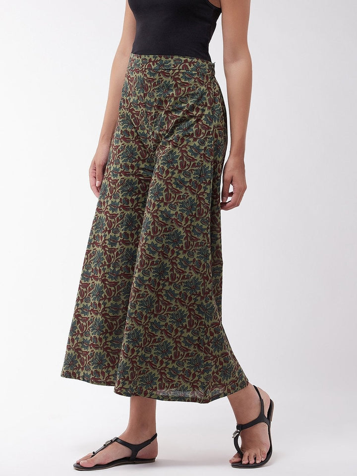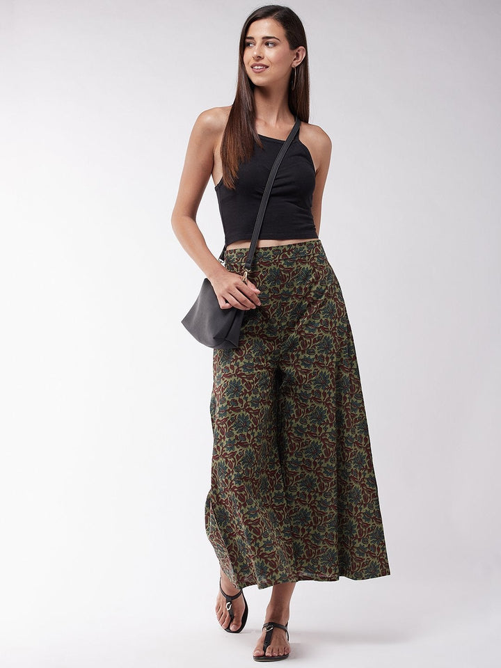 A pair of Dark Green floral printed Palazzos, opaque, and zip closure, Elasticated Palazzo. These cozy and hip Green palazzos made by InWeave are perfect for Sunday brunch. Pair them with a flowy tee and lace-up sandals for a super chic look.