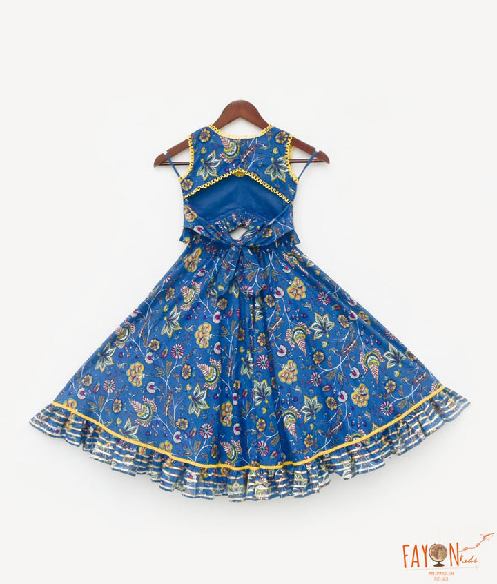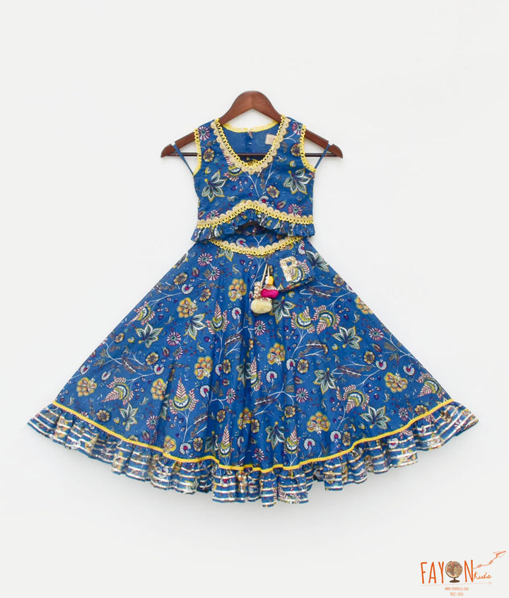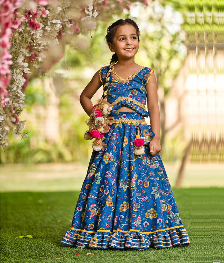 Girl's Blue Print Lehenga Choli