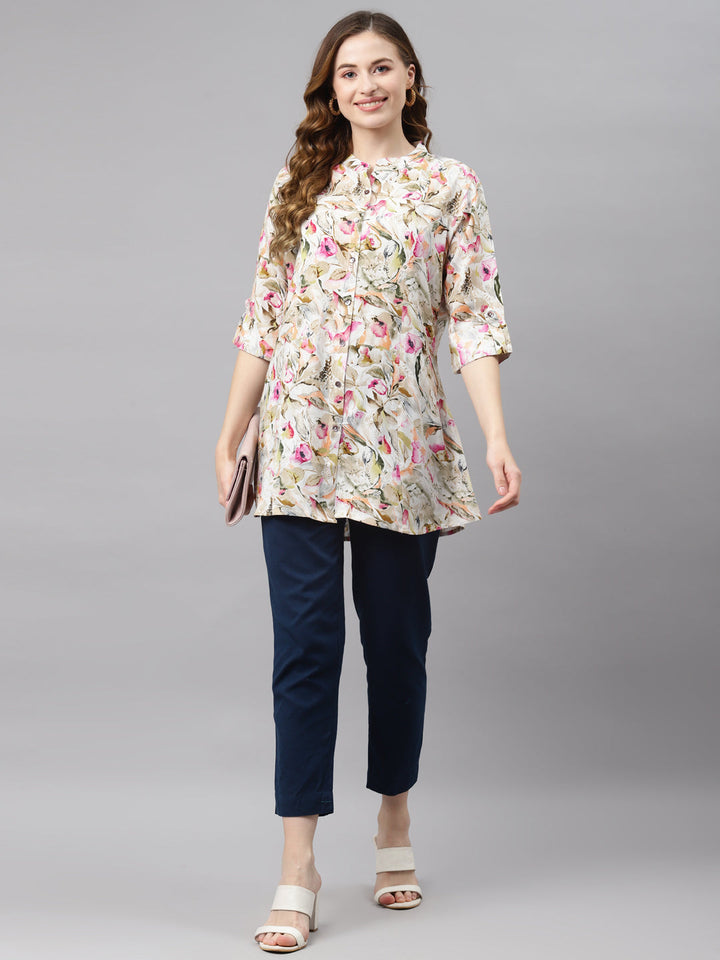 Very Elegant And Stylish Range From The Noz2Toz Tops, Made Up Of Rayon Fabric, Makes It Comfortable And Wearable For Office Purpose Or Any Casual Outing, It Has Curved Bottom Cut And Shirt Button Up Pattern With Semi Collard Neck. Pair It Up With Your Favorite Denim Or White Pant For Stunning Look.
