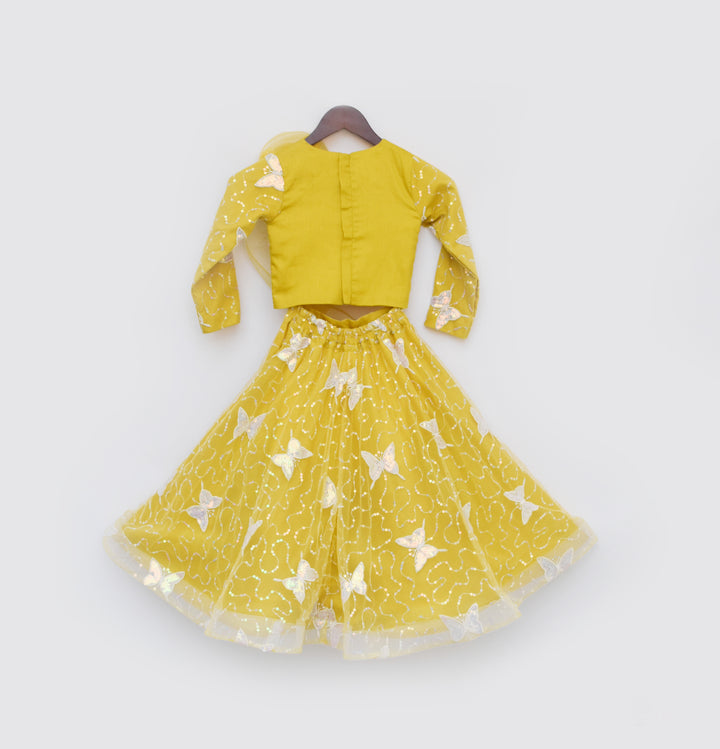 Girl's Mustard Yellow Butterfly Net Lehenga Choli